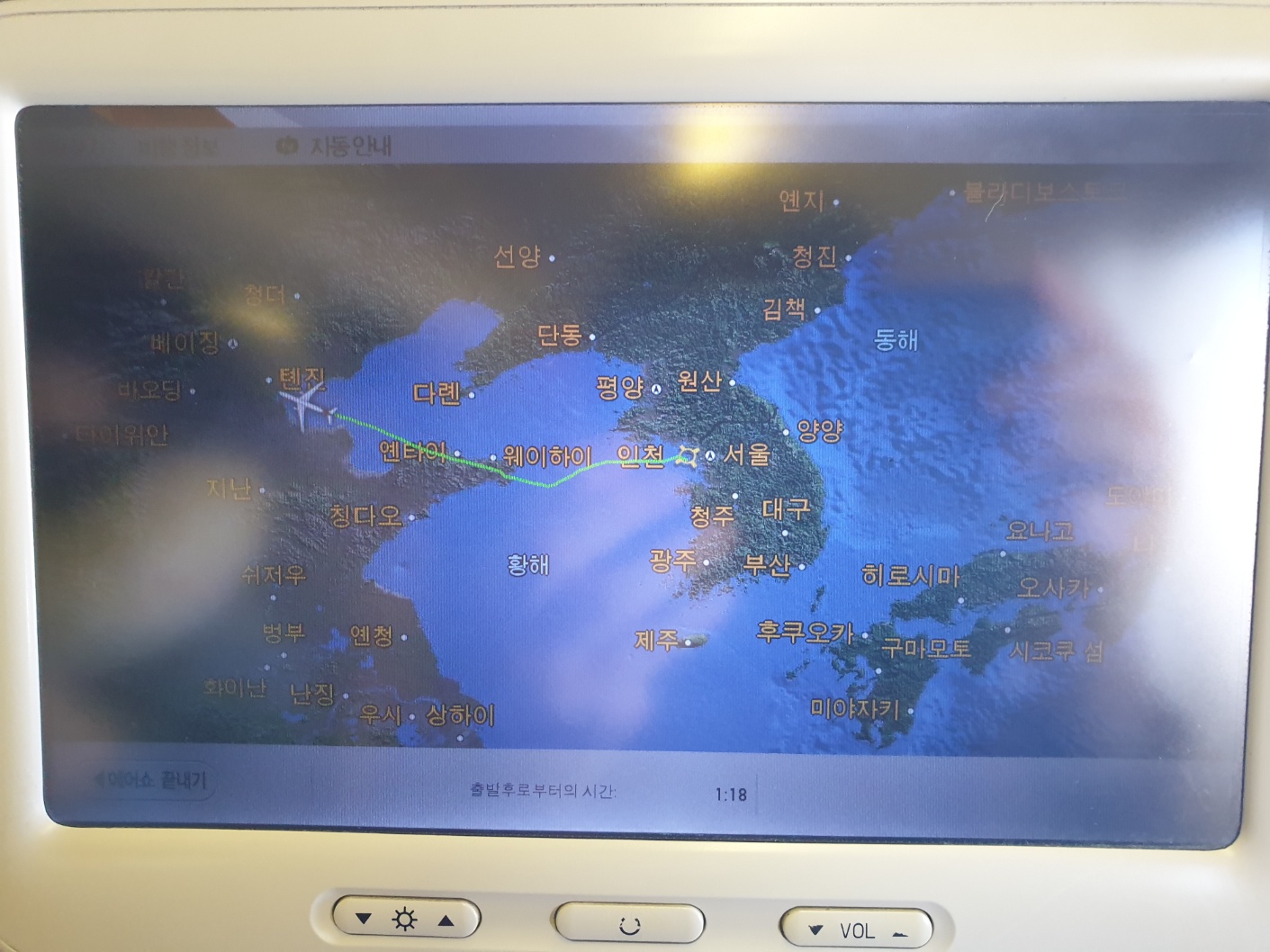 인천공항에서 중국 텐진으로 가는 항로